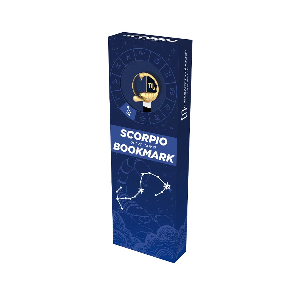 Για εκείνους που αγαπούν τα βιβλία όσο και τα άστρα! Το 3D μεταλλικό σελιδοδείκτης “Scorpio” από τη σειρά Horoscope της META{L}MORPHOSE είναι ένα κομψό και ιδιαίτερο αξεσουάρ για κάθε αναγνώστη που ανήκει στο ζώδιο του Σκορπιού.